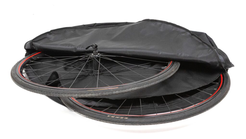 Borsa in tessuto morbido, ideale per il trasporto e la protezione di due ruote da 29″; dotata di un separatore interno che divide le ruote impedendone il contatto ed eventuali abrasioni.