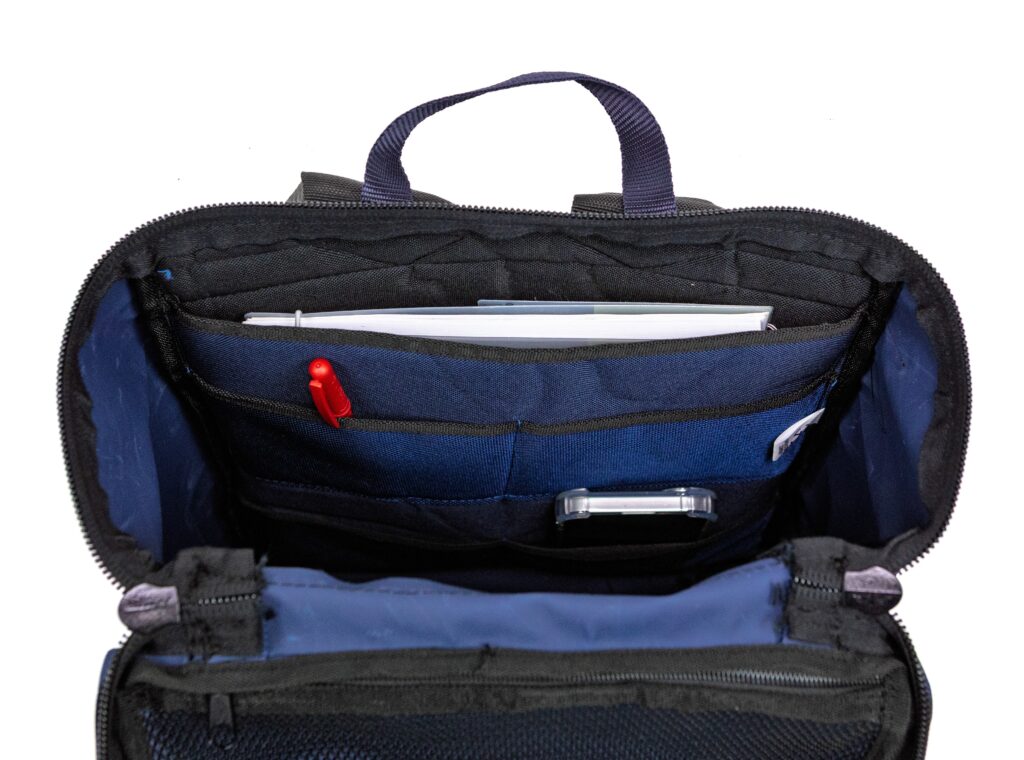 Pratico zaino concepito per l’uso di tutti i giorni, compatto, sottile ed ergonomico. Ha una pratica apertura a “secchiello” per una maggiore facilità di inserimento; dotato di numerose tasche e scomparti al fine di avere un vero e proprio organizer. I comodi spallacci imbottiti ed ergonomici per il trasporto a spalla si aggiungono ad una maniglia.